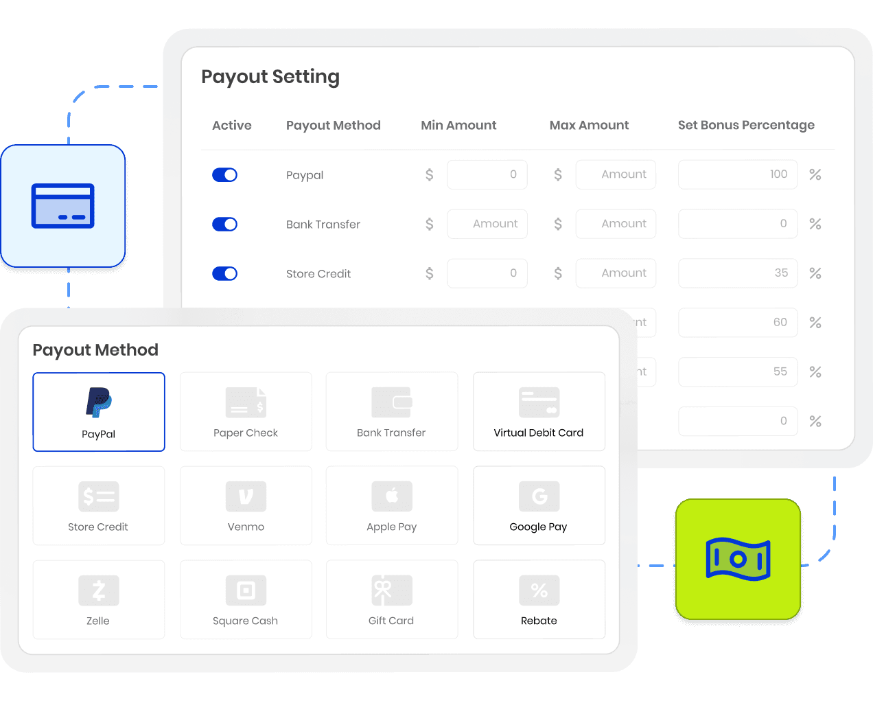 Let customers choose how they want to get paid. This way, your program stays competitive and conversion stays high.