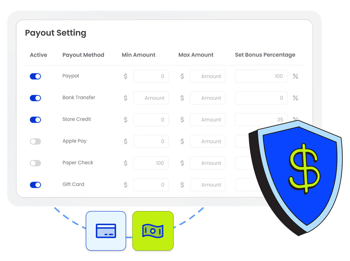Reusely gives you one clean payout workflow built for trade-in operations. Offer flexible payout methods, set payout limits, and automate fulfillment through integrated payout providers. As a result, your team stays fast, accurate, and audit-ready.