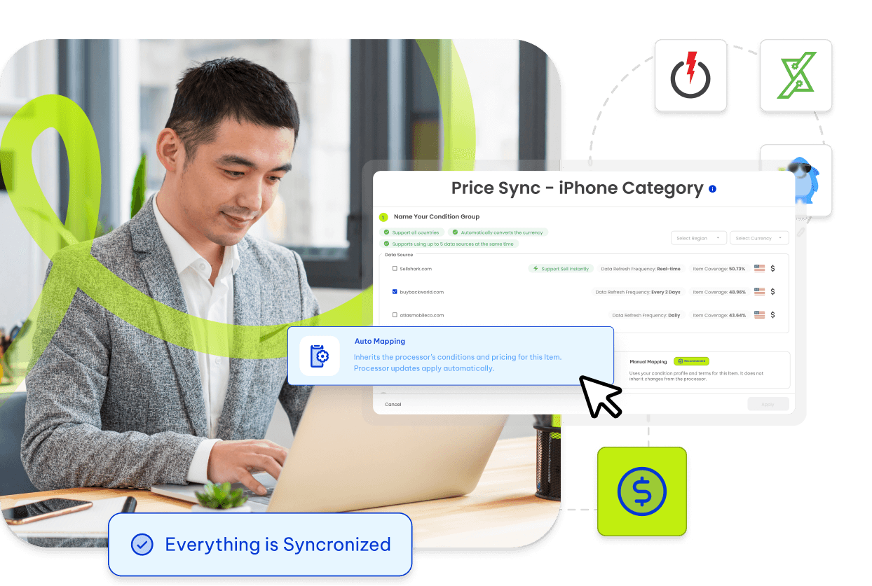 Trade-in pricing changes fast. Reusely helps you stay aligned with real market signals by benchmarking pricing so offers remain competitive, consistent, and scalable as volume grows.